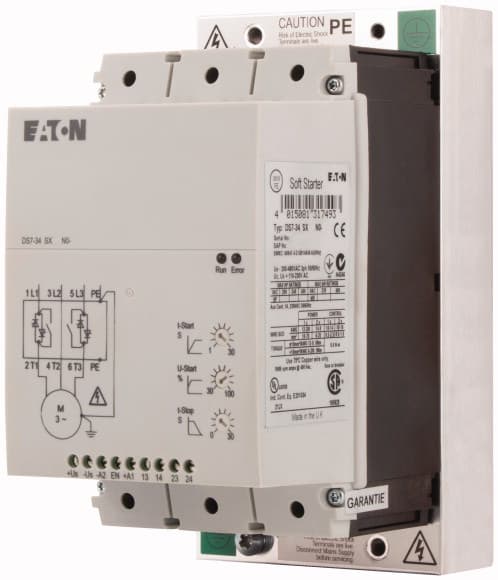 DS7 er einfaldur mjúkræsir sem hentar vel til almennrar stýringar á t.d. dælum, viftum og færiböndum. Rýfur tvo fasa og er með innbyggðu framhjáhlaupi (bypass). Er ekki með yfirálagsvörn.