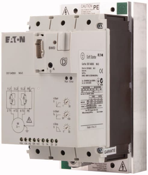 DS7 er einfaldur mjúkræsir fyrir SmartWire-DT samskipti en er einnig hægt að nota með hefðbundnum inngangsmerkjum. Hentar vel til almennrar stýringar á t.d. dælum, viftum og færiböndum. Rýfur tvo fasa og er með innbyggðu framhjáhlaupi (bypass). Er ekki með yfirálagsvörn.