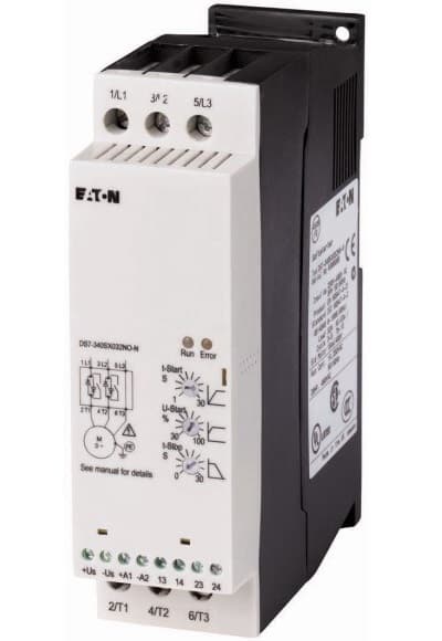 DS7 er einfaldur mjúkræsir sem hentar vel til almennrar stýringar á t.d. dælum, viftum og færiböndum. Rýfur tvo fasa og er með innbyggðu framhjáhlaupi (bypass). Er ekki með yfirálagsvörn.
