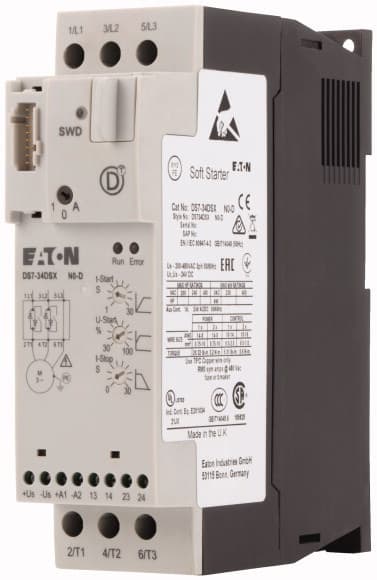 DS7 er einfaldur mjúkræsir fyrir SmartWire-DT samskipti en er einnig hægt að nota með hefðbundnum inngangsmerkjum. Hentar vel til almennrar stýringar á t.d. dælum, viftum og færiböndum. Rýfur tvo fasa og er með innbyggðu framhjáhlaupi (bypass). Er ekki með yfirálagsvörn.