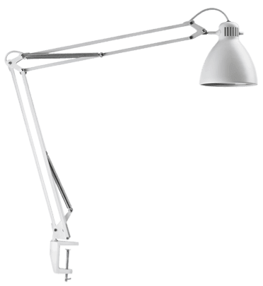 Lampanum fylgir LED-pera E27 og borðklemma. Hægt er að fá borðplatta sem aukahlut (selt sér).
