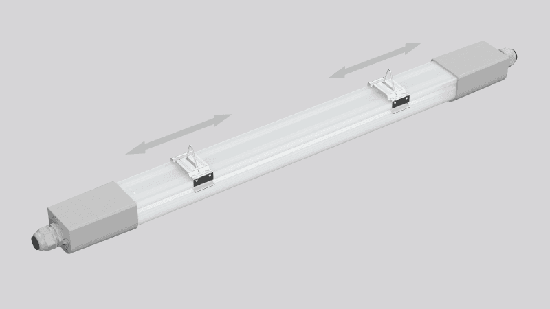 Rakaþéttur LED lampi á loft eða vegg. Lampahúsið og opalhlífin eru úr pólýkarbónat plasti, PC. Ryðfrí upphengi og lykkjur fyrir keðju eða vír fylgja með. Lampinn er gegnumtengdur. Fljótlegur í uppsetningu með snúningsloki í báðum endum ásamt nipplum. Í öðrum enda lampans er rofi til að breyta ljósmagni úr 100% í u.þ.b. 60%.