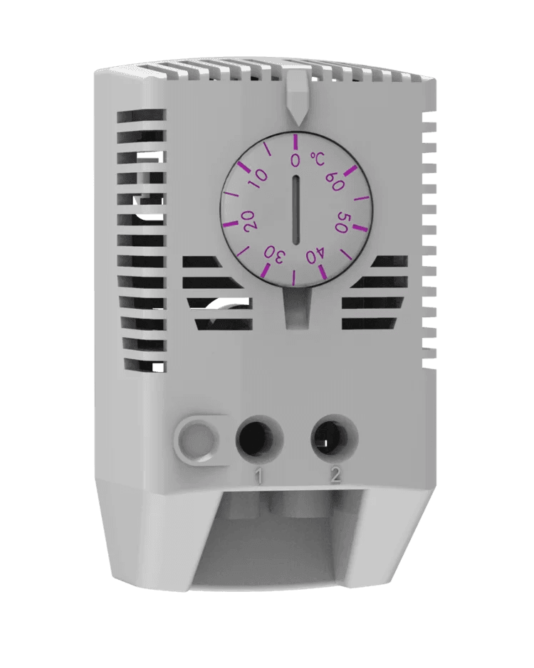 Hitastillir með DIN skinnufestingu fyrir töfluhitara, 0-60 °C.