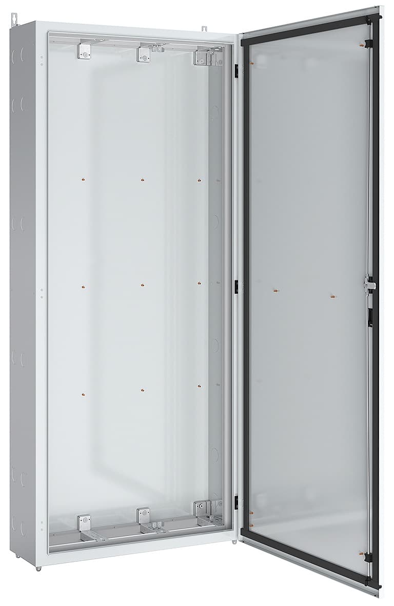 Prisma XS gólfskápur fyrir einingar, 432 greinar 800 A. Hurðin er með þriggja punkta læsingu og 180° opnun.
