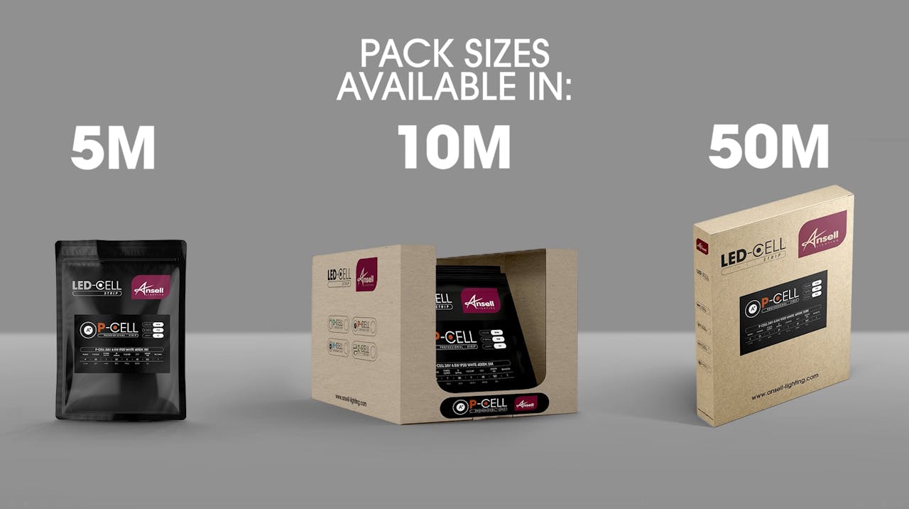 P-Cell er vandaður LED-borði sem er fáanlegur bæði IP20 og IP65. Ljóslitir í boði eru: 2700K, 3000K, 4000K og RGBW. Hentar í flest öll tilfelli þar sem þarf LED borða.