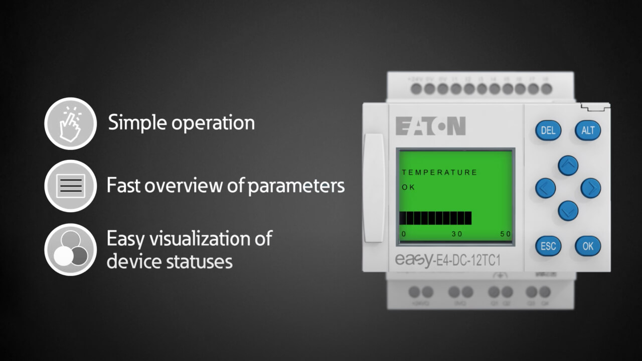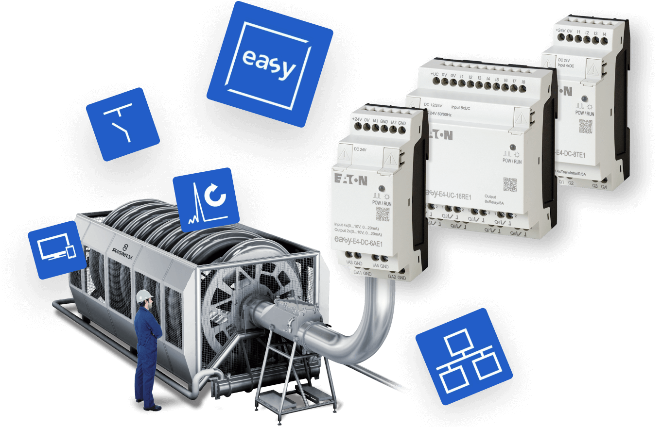 Hvort sem stýra þarf færibandakerfinu, dælukerfinu, loftræstikerfinu eða innan- og utanhússlýsingunni, þá er easy E4 sérlega vönduð lausn með ógrynni af nýjum möguleikum.