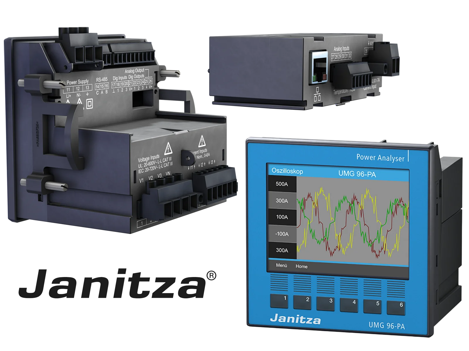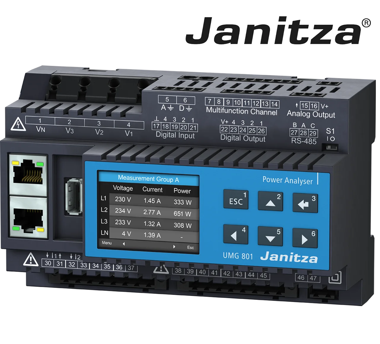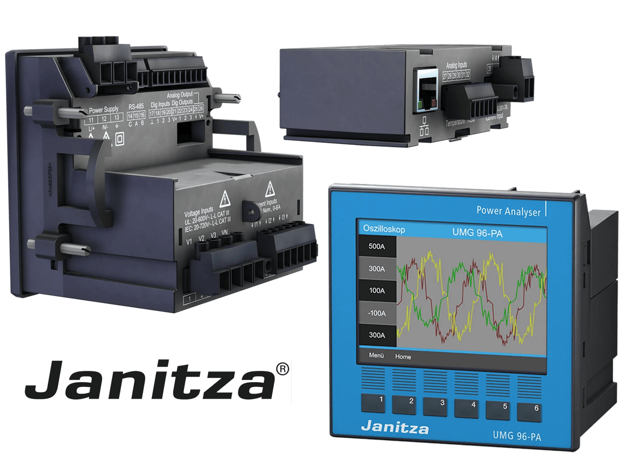 Janitza UMG 801 býður upp á nákvæma rauntímamælingu á spennu, straumi, afli, orkuflæði og aflgæðum samkvæmt alþjóðlegum stöðlum. Með öflugri úrvinnslu og innbyggðri skráningu er meðal annars hægt að greina spennusveiflur, ójöfnur og harmoníur í rafkerfum.