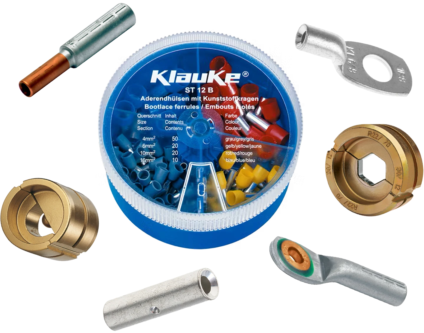 Klauke býður upp á prófað og vottað tengiefni sem tryggir ávallt örugga tengingu þegar það er notað með pressutækjum frá Klauke. Klauke er þekkt fyrir hágæða rafmagnstengitækni og verkfæri til pressunar, klippingar og götunar.